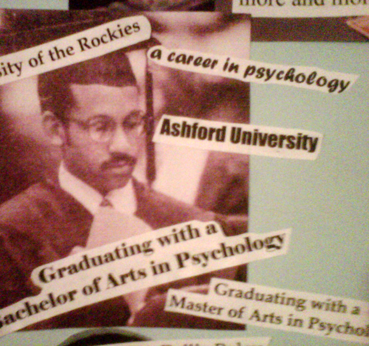 I am going to be sharing what I have had on my own vision board, which I have hanging in my home office as I write this. On my board, I have pictures of myself wearing my cap and gown when I graduated with my Associate of Arts. Surrounding that image, I have the words “Graduating with a Bachelor of Arts in Psychology,” “Graduating with a Master of Arts in Psychology” and “a career in psychology.” My vision here was to become a college graduate with diplomas in psychology, a subject that would deepen my ability to do the work I so love doing.